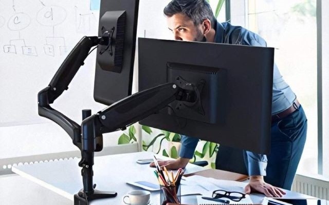 あった方が良いものとしてはモニターアームになります。机の上にそれぞれ標準のディスプレイスタンドで並べても良いのですがモニターアームがあるのがベターだと思います。ちなみに私が使用しているのは以下の画像のようなものです。