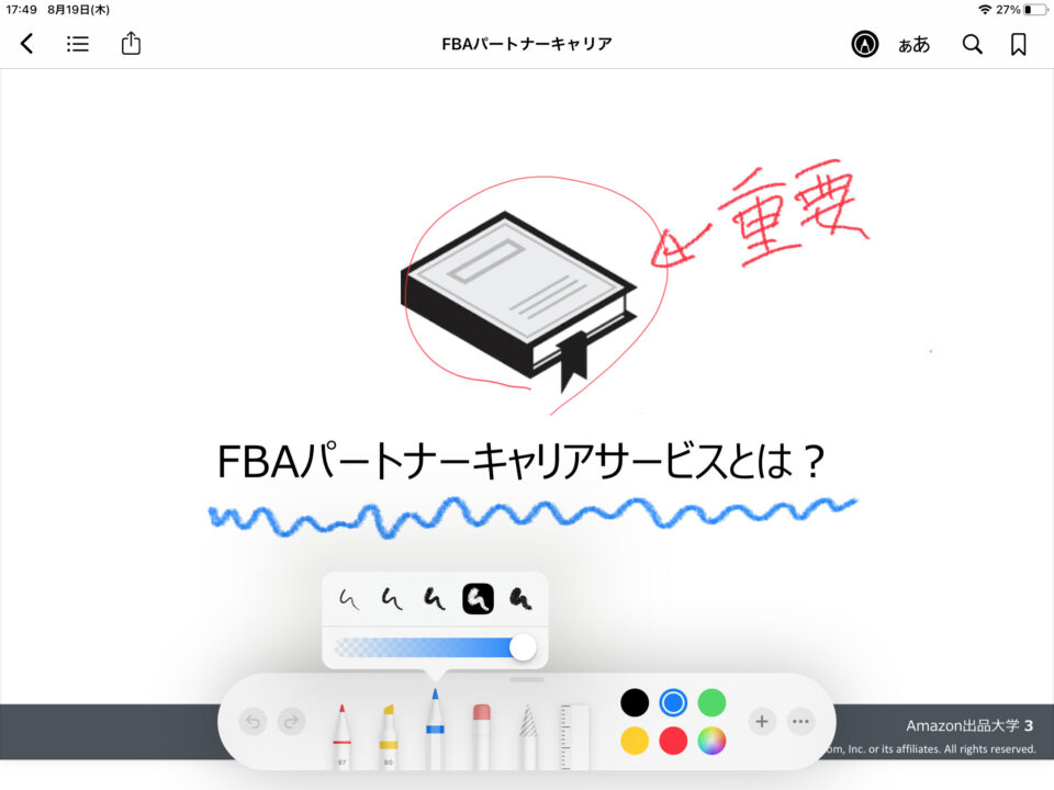 そうすると以下の様に編集が可能になります。タッチペンで自由に書き込んでください。
