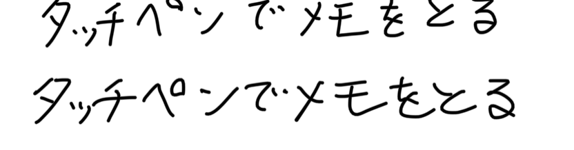 汚い字で申し訳ないのですが、 上側が通常の書き方で下側がペンを傾けて書いたものです。このように選ぶペンによって傾き検知が全く反応しないものもありますのでメモを書くだけであればこのようなペンを使うのが良いと思います。
