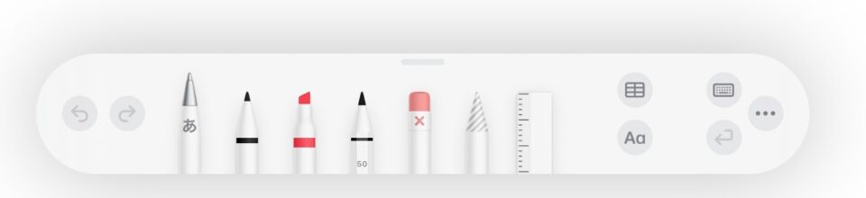 iPad のメモ帳には以下のような種類のペンや消しゴム定規などが選択可能になります。