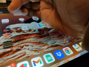 一度パームリジェクションを機能させてしまえばペンを離したとしても手のひらを離さなければ手のひらに反応することはないです。以下の写真のようにペンを画面から離しても手のひらに反応することはありません。
