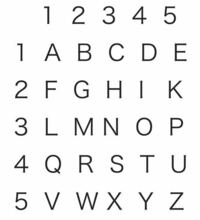 ポリビオス暗号:ポリビオス暗号は、古代ギリシャの歴史家であるポリビオスが使用したとされる暗号化方式です。アルファベットを5×5のグリッドに書き込んで、それぞれのアルファベットに対応する数字を記録します。例えば、Aは11、Bは12、Cは13などです。数字を組み合わせて暗号化します。